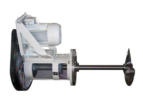 驅動裝置采用普通電機或防爆電機直接通過皮帶輪驅動裝置與攪拌軸聯(lián)接。攪拌軸由雙向推力軸承和水潤滑滑動軸承支承,具有足夠的強度和剛度,并具有高的穩(wěn)定性。