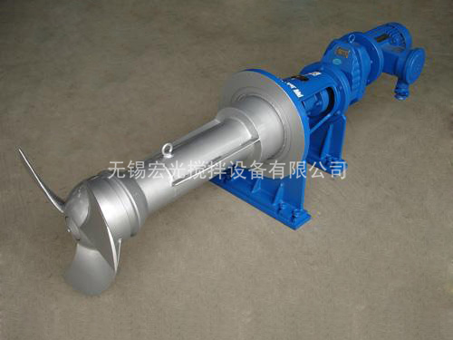側入式攪拌機是將攪拌裝置安裝在設備筒體的側壁上,攪拌機上的攪拌器通常采用軸流型,以推進式攪拌器為多,在消耗同等功率情況下,能得到高的攪拌效果,功率消耗僅為頂攪拌的1/3~2/3,成本僅為頂攪拌的1/4~1/3。轉速可在200~750r/min。