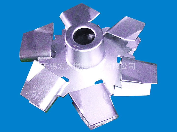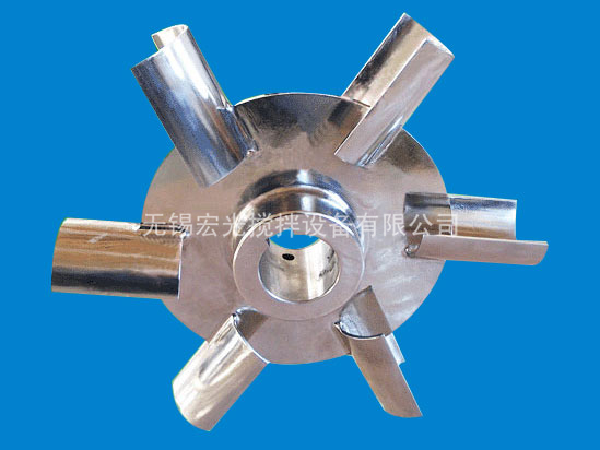 槳葉的外徑、寬度與高度的比例,一般為20:5:4, 圓周速度一般為 3~8m/s。渦輪在旋轉(zhuǎn)時(shí)造成高度湍動(dòng)的徑向流動(dòng),適用于氣體及不互溶液體的分散和液液相反應(yīng)過程。被攪拌液體的粘度一般不超過25Pa·s。 由在水平圓盤上安裝2~4片平直的或彎曲的葉片所構(gòu)成。