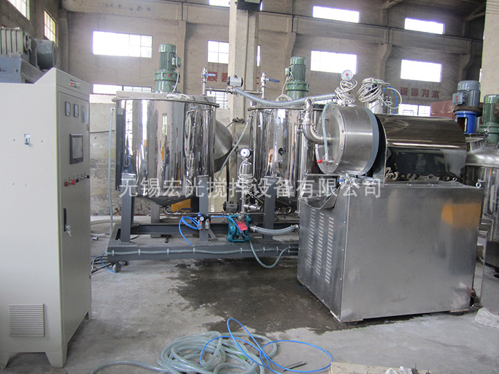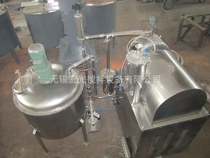 加料泵將預(yù)分散的材料送人研磨桶,研磨筒內(nèi)裝有研磨介質(zhì),磨細(xì)后的物料經(jīng)動態(tài)分離器排出,視產(chǎn)品細(xì)度不同,可采用單臺連續(xù)或多臺串聯(lián)連續(xù)研磨工藝。