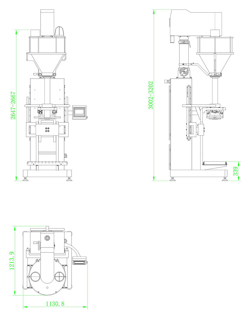 該機(jī)主要針對容易揚塵的超細(xì)粉末及高精度的包裝要求而開發(fā)設(shè)計,根據(jù)裝在容器下面的重量傳感器給出的信號完成雙速充填、計量及升降等工作,適用于包裝添加劑、碳粉、滅火器干粉、其它超細(xì)粉末、及有高精度包裝要求的粉末等。