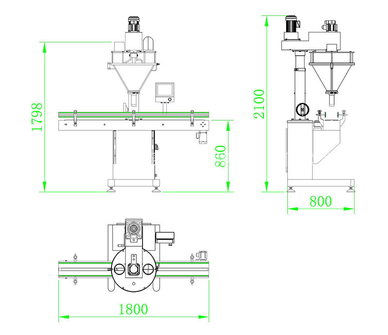 氣動(dòng)托罐裝置,保證充填時(shí)物料不灑出容器外。