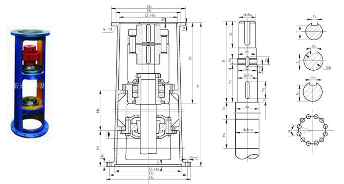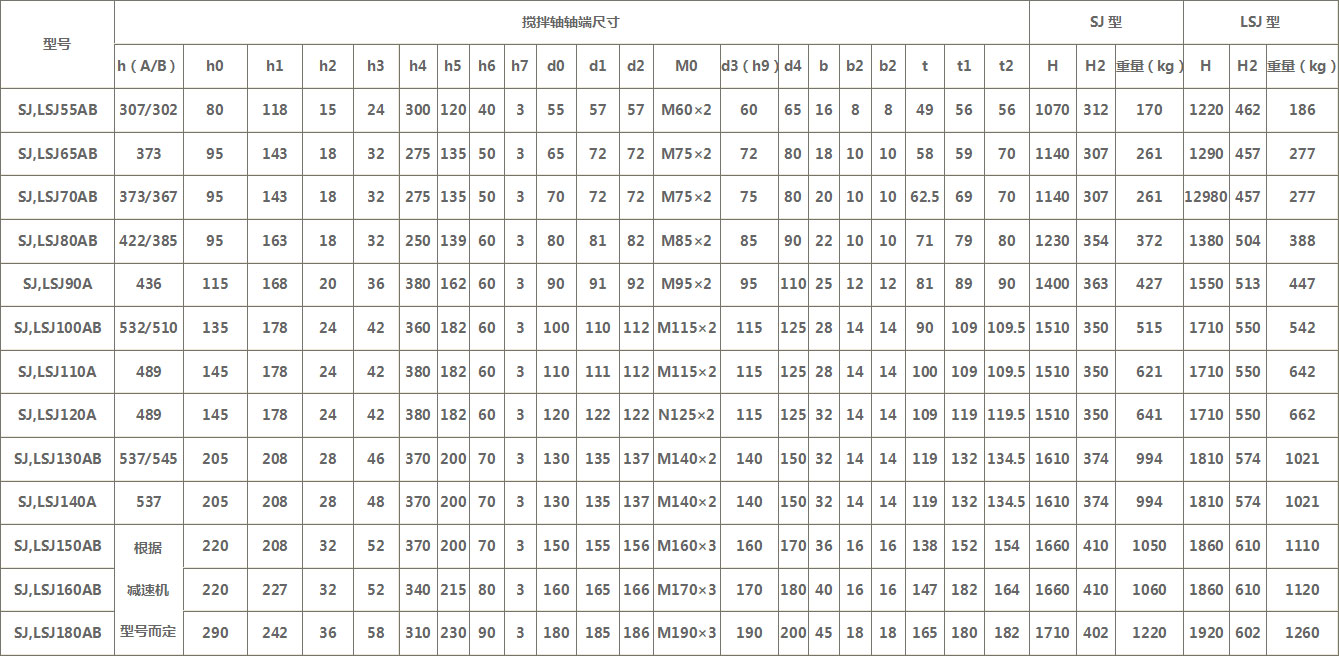 注:圖示所注“h”僅與本樣本BLD、LC-Ⅱ、DC-Ⅱ系列減速機(jī)相配,如選用其他型號或其他廠家減速機(jī),“h”需另行計算。增高后的LSJ型機(jī)架其下部空間高度可容納205、206或207型雙端面機(jī)械密封。